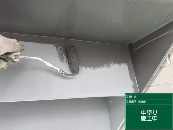 外壁塗装 階段中塗り